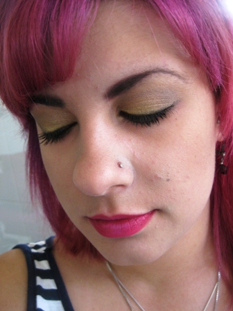This is what i wore to uni today, its a really simple look with lots of fun gold shades on the lid and a bright magenta lip.